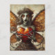 Eine beängstigende Vampir-Fee hält ein orangefarbenes Herz, umhüllt in Klammern.