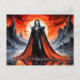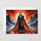 Vampire steht in einer dunklen, scheuen Landschaft unter einem roten Mond, mit fliegenden Fledermäusen und Burgen im Hintergrund.