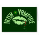 Une paire de lèvres vertes avec des gouttes de sang rouge mélangées aux shamrocks s'égouttant vers le bas illustre les mots "vampire irlandais." Grand usage de rampement de pub pour sucer le sang de lutin et à laver vers le bas avec de la bière verte.