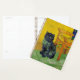 Planificateur avec un chat noir dans le style de Van Gogh! Ce chaton noir est assis par une chaise sur un sol vert contre un arrière - plan de décoration Starry Night. Un cadeau fabuleux pour les amoureux de les chats et les collectionneurs d'art hollandais !