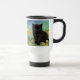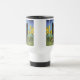 Travel Mug mit einer schwarzen Katze im Stil von Van Gogh! Ein flauschiges schwarzes Kätzchen sitzt neben gelben Blumen auf einem grünen und blauen Hintergrund. Ein lustiges Geschenk für Katzenliebhaber und holländische Kunstsammler!