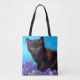 Tote Bag mit einer Katze und Blume im Van Gogh-Stil! Eine schwarze Katze Posen mit violetten Blumen. Ein puristisches Geschenk für Katzenliebhaber und holländische Kunstsammler!