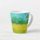 Latte Tasse mit Vincent van Gogh’s Ölmalerei Field mit Irises Near Arles (1888). Die goldgelben Felder in Arles, Frankreich, sind mit schönen blauen Reisen geschmückt. Ein wunderbares Geschenk für Liebhaber des Post-Impressionismus und niederländische Kunstsammler!
