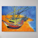 Dieses Landschaftsgemälde mit dem Titel "Fischerboote am Strand" in Saintes-Maries-de-la-Mer wird von dem berühmten Künstler Vincent van Gogh mit Tinte, Aquarell auf Papier hergestellt. Es fällt unter den japanischen Stil und wurde 1888 von van Gogh komplett. Vincent van Gogh war ein niederländischer postimpressionistischer Maler, dessen Werk, das sich durch seine raue Schönheit, emotionale Ehrlichkeit und seine kühne Farbe auszeichnet, einen weit reichenden Einfluss auf die Kunst des 20. Jahrhunderts hatte. Obwohl sein Werk damals nur einer Handvoll Menschen bekannt war und von weniger geschätzt wurde, ist er heute einer der bekanntesten Kunstnamen. Erst Ende 200 begann er mit der Malerei und vollendete viele seiner bekanntesten Werke in den letzten zwei Jahren seines Lebens. Im März 1886 zog er nach Paris und entdeckte die französischen Impressionisten. Später zog er nach Südfrankreich und wurde von dem starken Sonnenlicht beeinflusst, das er dort fand. Seine Arbeit wurde farbenfroher, und er entwickelte den einzigartigen und gut erkennbaren Stil, der während seines bleibe in Arles 1888 vollständig verwirklicht wurde.