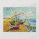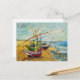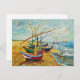 Van Gogh Fischerboote Postkarte. Öl auf Leinwand 1888. Das ist eines der besten Gemälde von Van Gogh an der Marina. Die Arbeit umfasst vier Fischerboote, die am Strand sitzen, mit ihren Segeln. Die Fischerboote sind rot, grün und blau. Ein hübsches Geschenk für die Liebhaber von Van Gogh, Segelbootgemälden, Postimpressionismus und französischer Kunst.