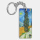 Schlüsselanhänger mit Vincent van Gogh's Ölmalerei Road mit Cypress und Star (1890), auch bekannt als Country Road in Provence by Night. Die Leute laufen an einer Straße vorbei an einem schönen Zypressenbaum unter einem blauen Nachthimmel mit gelbem Mond und Sternen. Ein fantastisches Geschenk für die Fans von Post-Impressionismus und holländischer Kunst.