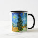 Kaffeemaschine Tasse mit Vincent van Gogh's Ölmalerei Road mit Cypress und Star (1890), auch bekannt als Country Road in Provence by Night. Die Leute laufen an einer Straße vorbei an einem schönen Zypressenbaum unter einem blauen Nachthimmel mit gelbem Mond und Sternen. Ein fantastisches Geschenk für die Fans von Post-Impressionismus und holländischer Kunst.