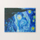 Puzzle mit Vincent van Goghs Ölgemälde The Starry Night (1889). Inspiriert durch seinen bleibe bei einem Asyl, zeigt die Kunst ein Dorf unter einem Nachthimmel von blauen und gelben Mond und Sternen. Ein großartiges Geschenk für die Fans von Post-Impressionismus und holländischer Kunst.