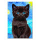 Foto Print mit einer schwarzen Katze in Van Gogh Malerei Starry Night! Dieses blaue mit Augen Kätzchen blickt bewundernswert von blauen Wirbel und einem hellgelben Mond. Ein fantastisches Geschenk für Katzenliebhaber und holländische Kunstsammler!