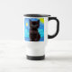 Travel Mug mit einer schwarzen Katze in Van Gogh's Gemälde Starry Night! Dieses blaue mit Augen Kätzchen blickt bewundernswert von blauen Wirbel und einem hellgelben Mond. Ein fantastisches Geschenk für Katzenliebhaber und holländische Kunstsammler!