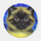 Magnet mit einer siamesischen Katze in Van Gogh's Gemälde Starry Night! Diese flauschig schöne Pose vor einem blauen Nachthimmel mit leuchtenden Mond und Sternen. Ein gemütliches Geschenk für Katzenliebhaber und holländische Kunstsammler!