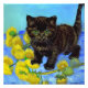 Foto Print mit einer Van Gogh Katze mit Sonnenblumen! Ein hübsches, schwarzes Kätzchen mit Posen und gelben Blumen. Ein fabelhaftes Geschenk für Katzenliebhaber und holländische Kunstsammler!