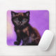 Mouse Pad mit einem Van Gogh-Katze mit lila Hintergrund. Dieses schwarze Kätzchen sieht den Betrachter hübsch an! Ein tolles Geschenk für Katzenliebhaber und holländische Kunstsammler!