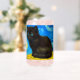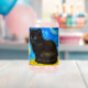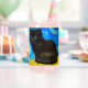 Can Glass mit einer Van Gogh Katze im Stil der Starry Night! Ein flauschiges schwarzes Kätzchen sitzt auf einem Tisch gegen einen blauen Nachthimmel und einen gelben Mond. Ein puristisches Geschenk für Katzenliebhaber und holländische Kunstsammler!