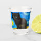 Shot Glass mit einer Van Gogh Katze im Stil der Starry Night! Ein flauschiges schwarzes Kätzchen sitzt auf einem Tisch gegen einen blauen Nachthimmel und einen gelben Mond. Ein puristisches Geschenk für Katzenliebhaber und holländische Kunstsammler!