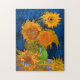 Puzzle mit Vincent van Gogh Vase mit fünf Sonnenblumen (1888). Stillleben mit fünf schönen Sonnenblumen in einer grünen Vase. Ein großartiges Geschenk für die Fans von Post-Impressionismus und holländischer Kunst.