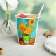 Papier-Cups mit Vincent van Goghs Stillleben-Gemälde, die einen Blumenstrauß in einer grünen Vase darstellen. Ein Teil seiner ersten Version in der Arles Sunflowers Serie. Ein großartiges Geschenk für Fans von Blume Gemälden, Post-Impressionismus und holländischer Kunst.