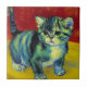 Tile mit einer Tabby-Katze im Stil von Van Gogh! Diese süße Kätzin schmückt Posen auf einem Holzfußboden mit roten Wänden und einem Fenster. Ein phantastisches Geschenk für Katzenliebhaber und holländische Kunstsammler!