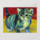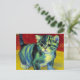 Postkarte mit einer Tabby-Katze im Stil von Van Gogh! Diese süße Kätzin schmückt Posen auf einem Holzfußboden mit roten Wänden und einem Fenster. Ein phantastisches Geschenk für Katzenliebhaber und holländische Kunstsammler!