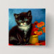 Button mit einer schönen Van Gogh tuxedo Katze! Diese kleine Pose neben einem Korb orangefarbener Blume auf einem roten Tisch. Ein tolles Geschenk für Katzenliebhaber und holländische Kunstsammler!