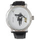 Uhr, Vintage Männeruhr mit schwarzem Lederarmband