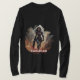 Powerful sci-fi warrior striding through fire and smoke, clad in dark futuristic armor. A dynamic, cinematic scene full of intensity, strength and action. Perfect for fans of epic battles, dystopian worlds and strong female heroes.