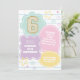 Pastellvariante Preppy-Pflaster Geburtstagseinladung mit Herz, Gänseblümchen, Diskokugel und Schachbrett Hintergrund.