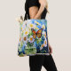 Schöne Blume Tote-Tasche mit einer schönen Abbildung einer Glasvase von Blume mit einem Monarch Butterfly sitzend auf einem der Gänge.