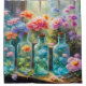 Dieser Duschvorhang besticht durch eine wunderschöne Blume-Vasen, die mit atemberaubenden, lebhaften Blüten gefüllt sind und sich auf einem Fensterbrett befinden. Pastellfarben, sanftes Design. Schönes Badezimmer Accessoire in Vintagem Look!