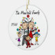 Ein hübscher, runder Keramik-Sake Weihnachtsschmuck bietet eine Strichmännchen-Familie inklusive Vater, Mutter, Mädchen, Junge und Kleinkind-Mädchen vor einem dekorierten Weihnachtsbaum mit Bereichen, die Sie mit Ihrem Familiennamen und dem laufenden Jahr anpassen können! Dieses niedliche Urlaubssendekor ist ein großes Geschenk für die junge Familie, um ein besonderes Jahr zu feiern!