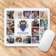 Personalisierte Väter tagsmäuse mit 16 Fotos, ein Superheldenvater, der das Wort "VATER" unter einem Shirt, die Worte "du bist mein Held" und den Namen deiner Kinder offenbart.