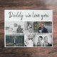 Vater mit Kindern und Vater Foto Collage Puzzle Familie. Collage von 6 Fotos, väterlicher Name mit einer süßen Nachricht in einem trendigen Drehbuch und Kindernamen, die die Fotos überlagern. Fügen Sie Ihre 6 Lieblings-Fotos hinzu. Der süße Sake und ein Geschenk zum Geburtstag, Vatertag oder Weihnachten für einen Vater, neuen Vater oder Großvater.