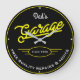 Vaters Garage oder irgendein Name mit einem neongelbfarbenen Retro-Skript auf schwarzem Hintergrund. Verwenden Sie einfach die Option Vorlage anpassen, um den Text zu ändern. Qualitätsservice und Ratgeber Typografie mit jedem Datum. Wählen Sie einfach die Farbe und Größe der Hand aus.