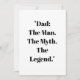 „Vater: Der Mann. Der Mythos. Die Legende.“ ist das perfekte Geschenk zum Vatertag, Geburtstagen oder jedem Tag, an dem Sie einen großartigen Vater ehren möchten. Ideal für T-Shirts, Tassen und Grußkarten