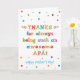 Sie nennen Ihren Vater Apá, nicht Vater. (Apá bedeutet Vater auf Spanisch.) Stellen Sie sich vor, wie aufgeregt Apá sein wird, eine Vatertagskarte zu erhalten, die speziell an ihn adressiert ist! Ihr apá wird auch die Liebe dieser Karte hellen, farbenfrohen Design, das sagt "Danke, dass immer so ein phantastischer Apá! Alles Gute zum Tag des Vaters!" Machen Sie diese Karte anpassbar! Klicken Sie auf "Design bearbeiten", "Unten/Rechts: Text & Bilder", "Text" und "Text hinzufügen", um Ihre eigene, personalisierte Nachricht an Apá inside zu schreiben!