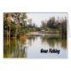 Ruhiger Teich mit schönen Reflexionen und einer friedlichen Umgebung. Perfekte Karte für den Vater, der den Angelsport liebt.