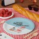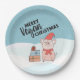 Vegane Weihnachten mit Cartoon-Ferkel und Geschenk Pappteller