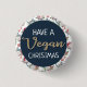 Dieser Retro-Button zeigt die Worte "Vegane Weihnachten haben" in einem modernen Weiß und einem goldenen Kalligraphie-Schriftart mit elegantem blauen Hintergrund und blumengeschmückten winterlichen Rahmen. Wenn Sie Hilfe, weitere Anpassung oder andere passende Artikel benötigen, kontaktieren Sie mich bitte. (Siehe dazu passende vegane Artikel in meiner Sammlung "Go vegan" und "Vegane Weihnachten")