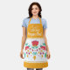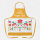 Moderne Schürze aus Veganem Koch in hellgelb und weiß, mit bunten Blume und Paprikaschoten aus rotem Chili, und einem weißen Koch hat Silhouette. Einfach anpassbar, indem Sie Ihren Namen und Text hinzufügen.