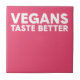 Diese Grafik zeichnet sich durch fett rosa Typografie aus, in der "VEGANS TASTE BESTER" hervorgehoben wird. Das Design setzt einen modernen, auffälligen Schriftart ein, der die positive Botschaft des Veganismus betont. Das helle Farbschema und der kräftige Text schaffen ein visuelles und ansprechendes Ambiente für alle, die den Lebensstil der Pflanze schätzen oder fördern. Dieses Stück kann als Slogan für eine vegane Kampagne, ein Restaurant oder eine Sensibilisierungsinitiative dienen