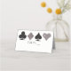 Diese weiße gefaltete Platzkarte ist perfekt für eine glamouröse und glitzernde Las Vegas Casino Hochzeit. Sie verfügt über Imitate mit silberfarbenem Glitzer mit schwarzen KartenAnzügen, einen vorbedruckten Schreibraum in Tischnummern und einen weißen Schreibraum in Ihren Gästennamen. Muss Ihr Caterer die Auswahl der Speisen jedes Gastes kennen? Bearbeiten Sie dieses Design, um einen farbigen Backer für jede Mahlzeit hinzuzufügen, oder verwenden Sie einen Aufkleber, um zu bestimmen, wer welche Art von Mahlzeit bekommt. Diese Karten werden in 25-er-Päckchen verkauft. Vergessen Sie also nicht, genug für jeden Platz zu bestellen!