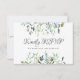 Carte de réponse RSVP double face avec choix de repas. Cette carte de réponse de mariage à la verdure est une partie obligatoire de l'ensemble de mariage pour votre jour spécial qui demande commodément aux invités quel repas ils aimeraient à votre réception et s'ils pourront assister à votre mariage. Cette carte présente de belles feuilles botaniques peintes à la main. L'arrière-plan peut être modifié. Cette carte RSVP s'adaptera parfaitement à nos invitations à la verdure. Fait partie d'une collection.