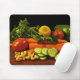 Dieses mousepad kennzeichnet eine köstliche hölzerne Servierplatte des frischen rohen Gemüses einschließlich Karotten, Tomaten, Paprikaschoten, Gurken und Petersilie. Eine Zitrone und Acajoubäume schließen die Auswahl ab. Dieses Stillleben ist eine schöne und gesunde feinschmeckerische Mahlzeit sowie eine bunte künstlerische Zusammensetzung von Rotem, orange, gelb, grünt, bräunt sich und brüniert.