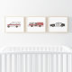 Ajoutez une touche finale à l'espace de votre petit avec cet ensemble de 3 empreintes d'ambulance aquarelle, de camion de pompier et de voiture de police.