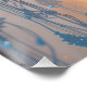 Das Nebenporträt einer friedlichen jungen Frau mit geschlossenen Augen, beleuchtet durch kontrastfarbenes Licht - warmes Orange von unten und cooles Blau von oben. Ihr Gesicht wird von einem glänzenden blauen Schleier mit feiner Stickerei gerahmt, während glitzernde Flecken auf ihrer Haut schimmern und in der umgebenden Luft treiben. Weichdampf zieht sich sanft um sie herum, mit einem subtilen Glühen, das die Tiefe erhöht. In hyper-realistischen Details mit einem traumhaften Hintergrund mit weichem Fokus, strahlt das Bild Ruhe und magische Schönheit aus.