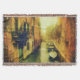 In der romantischen Herbstleuchte von Venedig, Italien, mit einem schönen italienischen Gemälde in erdigen Farbtönen rostig orange, goldgelb und olivgrün. An einem Venezianischen Balkon mit roten Blume, die noch in der Blüte sind, können Sie einen ruhigen Kanal mit verzierten Booten und alten Gebäude erkunden. ♡ Idyllfire