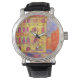 Uhr, Vintage Männeruhr mit schwarzem Lederarmband