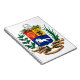Das derzeitige Wappen Venezuelas wurde vom Kongress am 18. April 1836 in erster Linie genehmigt, wobei kleine Änderungen durch die Geschichte durchlaufen wurden und die gegenwärtige Fassung erreichten. Das Schild ist in den Farben der Nationalflagge aufgeteilt. In der Dexter-Chefin auf einem roten Feld repräsentiert Weizen die Gewerkschaft der 20 Staaten der Republik, die zu der Zeit existierten und den Wohlstand der Nation. Im finsteren Häuptling, auf einem gelben Feld, sind Waffen (ein Schwert, ein Säbel und drei Lanzen) und zwei nationale Fahnen durch einen Zweig des Lorbeers gebunden, als Symbol des Triumphes im Krieg. Am Boden, auf einem tiefen blauen Feld, läuft ein wildes weißes Pferd (das vielleicht Simón Bolívars weißes Pferd Palomo repräsentiert) frei, ein Symbol für Unabhängigkeit und Freiheit. Über dem Schild sind zwei gekreuzte Kornukopien (Hörner des Überflusses), die Reichtum ausgießen. Der Schild wird von einem Olivenzweig und einer anderen Palme flankiert, die beide am Boden des Mantels mit einer großen Band verbunden sind, die die nationale Trikolore repräsentiert (gelb für den Reichtum des Landes, blau für den Ozean, der Venezuela von Spanien trennt, und rot für das Blut und den Mut des Volkes).