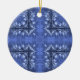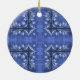 Un joli motif bleu à bougies et tourbillons ornent cet ornement de vacances en céramique.