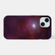 Illustration d'une nébuleuse à vent pulsar produite par l'interaction des particules de sortie de l'étoile à neutrons avec du matériel gazeux dans le milieu interstellaire que l'étoile à neutrons traverse. Une telle nébuleuse de pulsar à infrarouge est inhabituelle parce qu'elle implique une énergie relativement faible des particules accélérée par le champ magnétique intense du pulsar. Ce modèle hypothétique expliquerait la signature infrarouge inhabituelle de l'étoile à neutrons.